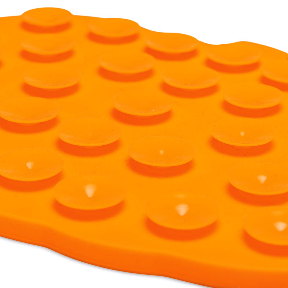 Die Schleckmatte ist aus 100% Silikon hergestellt und kann dank der Saugnäpfe schnell und einfach auf jeder glatten Fläche befestigt werden, auch an gefliesten Wänden oder in der Badewanne.