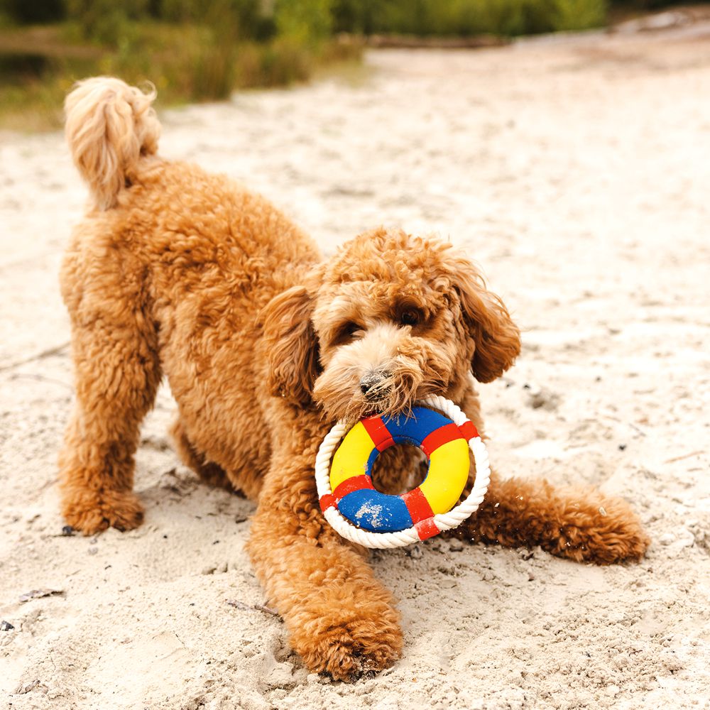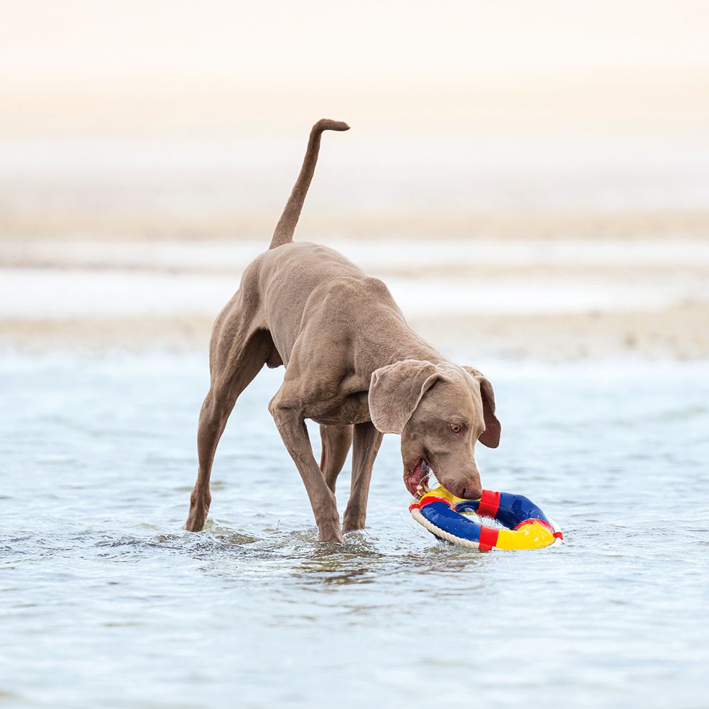 Die Beeztees Wasserspielzeuge sind speziell für schwimmbegeisterte Hunde entwickelt worden. Sie sind weich und leicht, können mühelos aufgefangen werden und der wasserfeste Stoff geht nicht unter sondern schwimmt auf dem Wasser. Diese Rettungsringe bringen eine Menge Spaß beim Spiel an der frischen Luft oder im Haus. Besonders robust werden sie durch das eingearbeitete Seil.