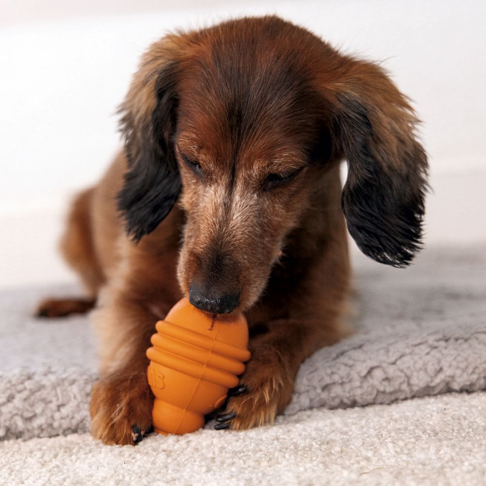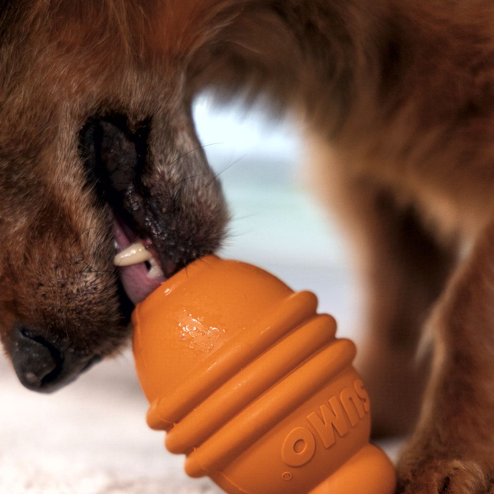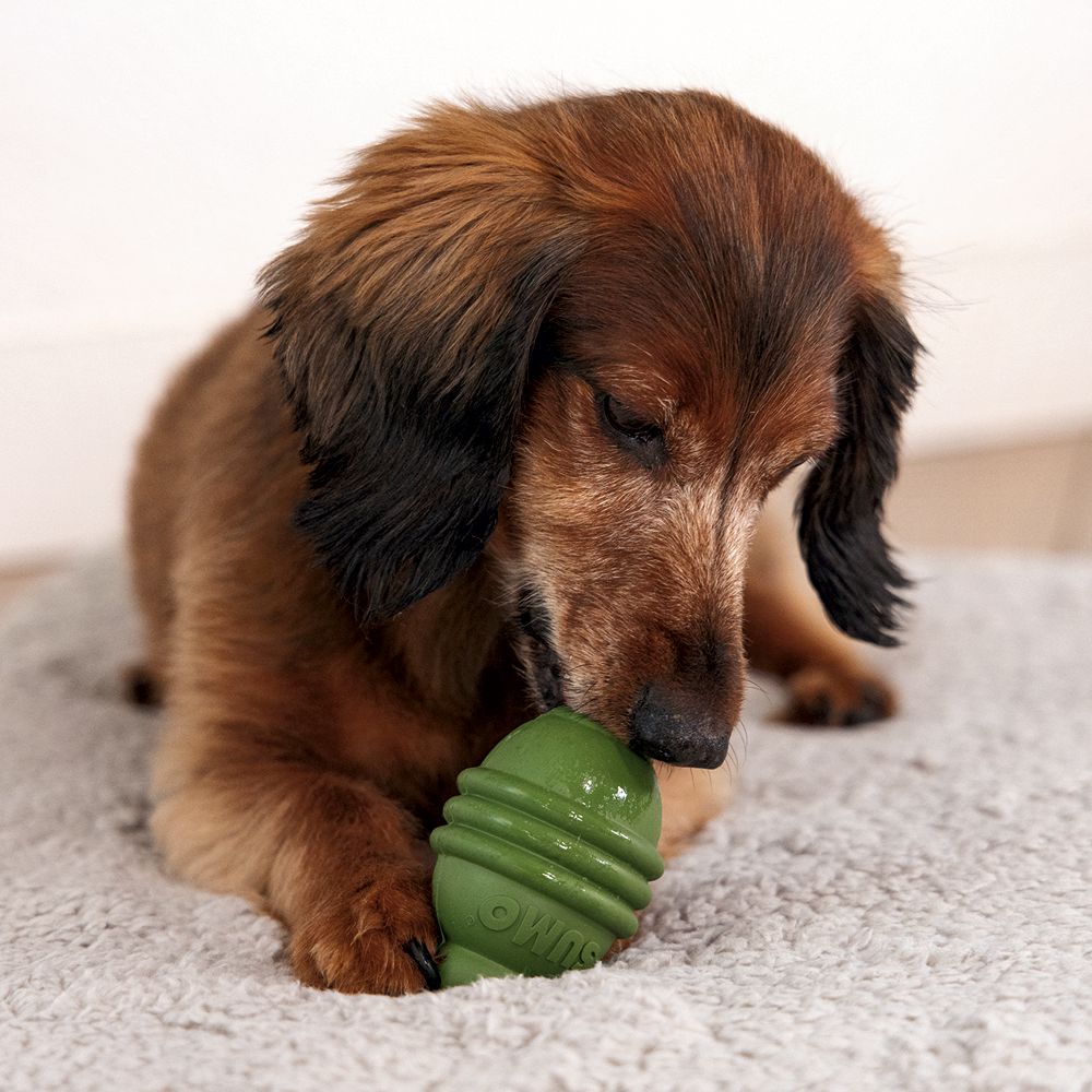 Dank des Materials und durch seine besondere Form springt und hüpft der SUMO PLAY völlig unvorhersehbar in alle möglichen Richtungen, was für Aufmerksamkeit und anhaltende Spielfreude sorgt. Das Material fühlt sich in der Schnauze weich und gut an und das Tier kaut gerne darauf herum. Außerdem ist es extrem robust und haltbar. Der SUMO PLAY ist wegen seiner vielfältigen Anwendungsmöglichkeiten beliebt beim Menschen und unwiderstehlich für den Hund: Er kann mit Leckerchen, Leberwurst, Snack-Creme, usw. befüllt werden, eignet sich hervorragend für Wurf-, Versteck- und Jagdspiele und ist natürlich perfekt zum Apportieren. Der SUMO PLAY kann sogar in der Spülmaschine gereinigt werden. Er ist in drei verschiedenen Größen und den Farben orange und grün erhältlich.