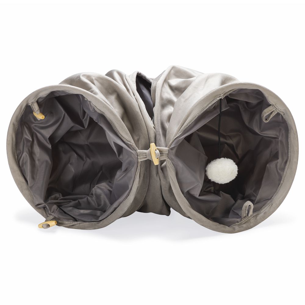 Dank seines durchdachten Designs lässt sich der Katzentunnel ganz einfach zusammenschieben und platzsparend verstauen - perfekt, wenn er mal nicht gebraucht wird. Der schöne Samtstoff an der Außenseite in drei geschmackvollen Farben macht den Tunnel zudem zu einem schicken Hingucker, der sich harmonisch und stilvoll in dein Zuhause einfügt. So wird Spielen nicht nur für deine Katze, sondern auch fürs Auge zum Vergnügen.
