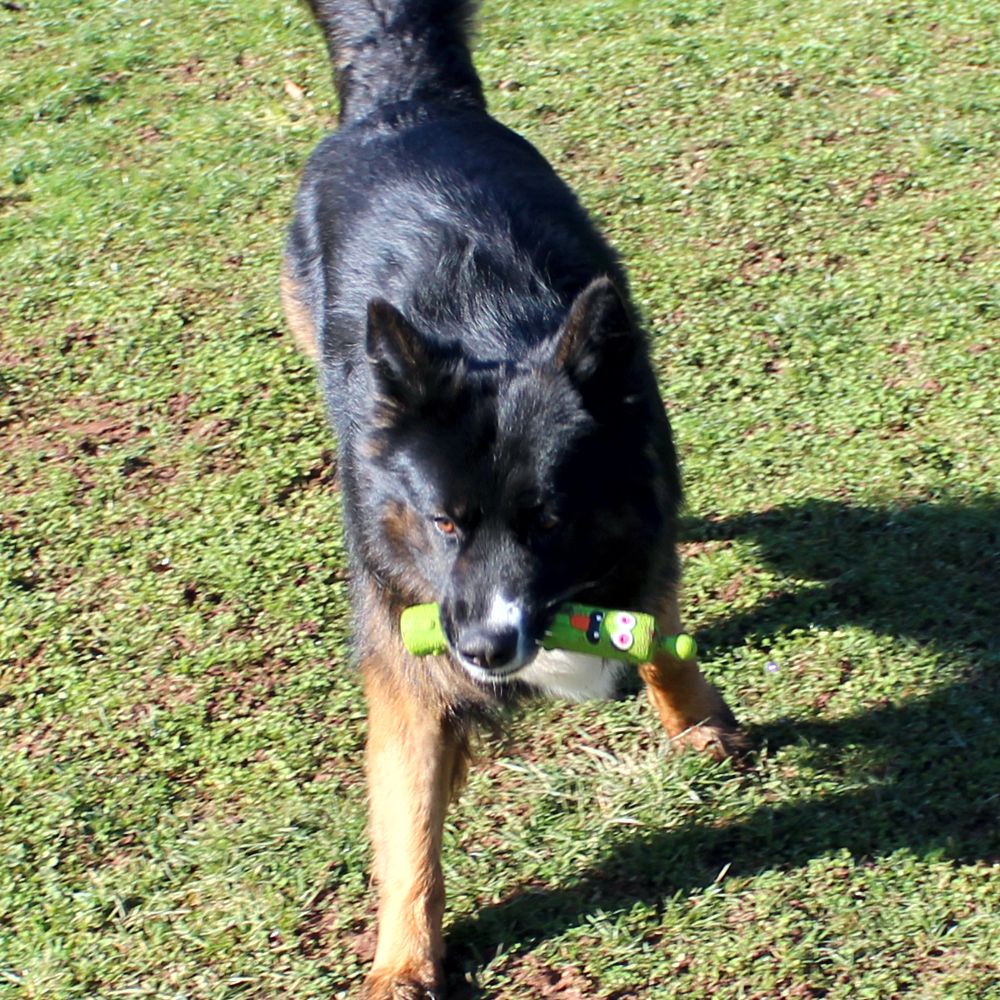 Dein Hund liebt Bewegung und das Apportieren? Dann mach ihn mit den außerirdischen INVADERS von Dog Comets bekannt, sie sind genau das richtige für ihn. Diese robusten Wurfstäbe mit lustigen Aliengesichtern bestehen aus dickem Naturlatex und sind mit einer weichen Füllung aus recycelbarem Polyester versehen. Dadurch lassen sie sich weiter werfen und vom Hund besser aufnehmen. Die INVADERS überraschen mit Quietschgeräuschen wenn man sie drückt, was gerade neugierige, aktive Hunde begeistert. Das sorgt für zusätzliche Stimulation und Action beim Spiel. Die INVADERS eignen sich perfekt zum Spielen im Haus und draußen, für Wurf-, Versteck- und Apportierspiele. Sie sind in drei tollen auffälligen Farben und zwei Größen erhältlich.