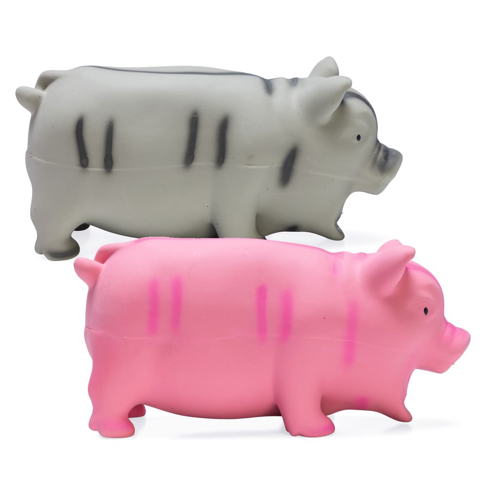 Latex-Spielzeuge eignen sich hervorragend zum Werfen und Apportieren - egal ob drinnen oder draußen. Schon beim Hinsehen vermitteln die lustigen Spielzeuge von Karlie Spaß am gemeinsamen Spiel. Ihr buntes Design regt die Phantasie an und sie überraschen mit Grunzgeräuschen, wenn man sie drückt. Dies wird besonders von neugierigen, aktiven Hunden begeistert angenommen. Die Schweine gibt es in zwei Farben und sie sind ca. 21 cm groß.