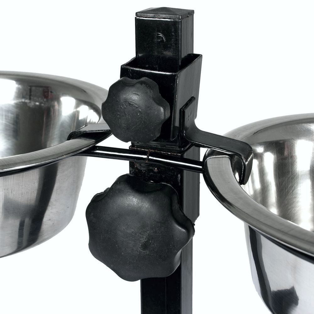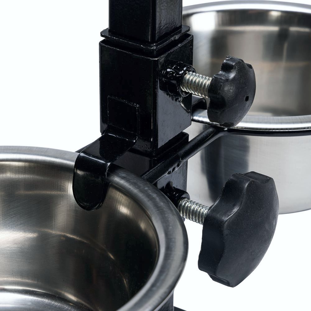 Diese schlichten und funktionellen Näpfe sind aus Edelstahl hergestellt. Sie sind in einem praktischen stabilen Ständer aus Metall nebeneinander angeordnet, so dass Wasser- und Futternapf immer zusammen sind. Durch die Höhenverstellung kannst du die Napfhöhe perfekt auf die Größe deines Hundes einstellen. So kann dein Hund in einer entspannten Haltung aufrecht stehend fressen. Das kann bei der Verdauung helfen und eventuellen Nacken- oder Gelenkproblemen vorbeugen. Der Ständer hat Anti-Rutsch-Füßchen aus Gummi, die auch deinen Fußboden vor Kratzern und Beschädigungen schützen. Die Näpfe gibt es in zwei Größen, sie können zum Befüllen oder zur Reinigung einfach aus der Halterung herausgenommen werden und sind selbstverständlich spülmaschinengeeignet.
