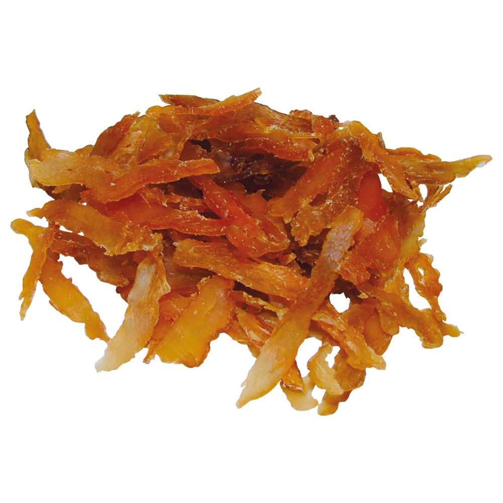 Strips: Fleisch und tierische Nebenerzeugnisse (75,7% Hühnerfleisch), pflanzliche Eiweißextrakte (9,6% Erdnussprotein), pflanzliche Nebenerzeugnisse, Fisch und Fischnebenerzeugnisse (0,7% Meeresfrüchte, gemahlen)