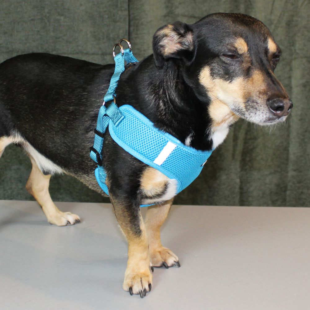 Außerdem kann das Geschirr an heißen Sommertagen vor dem Anlegen in Wasser getaucht werden, um dem Hund eine angenehme Abkühlung verschaffen. Es unterstützt somit die Körpertemperaturregulierung und kühlt durch Verdunstung.